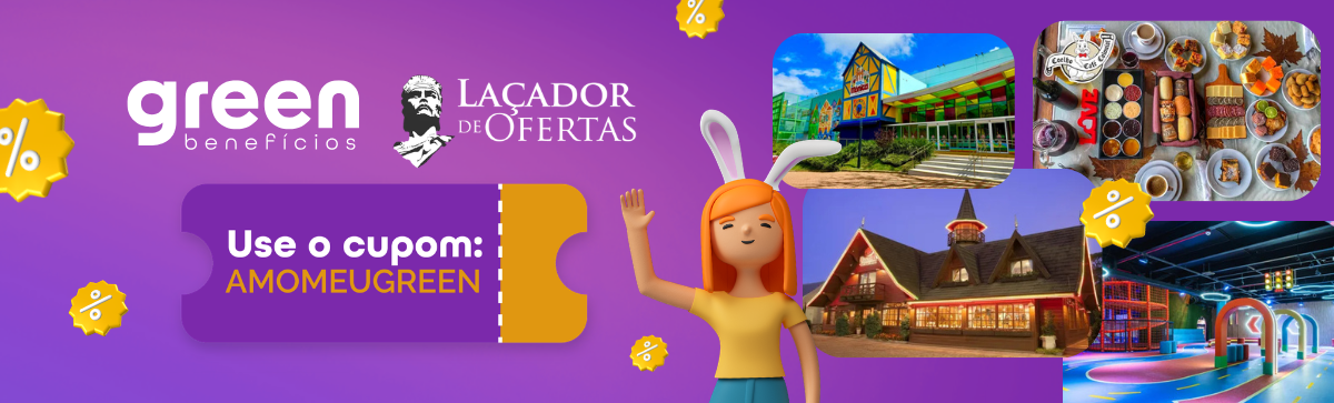 Para aproveitar ainda mais esse período, a Green, em parceria com o Laçador de Ofertas, preparou uma oportunidade especial: experiências com desconto e 5% de cashback usando o cupom AMOMEUGREEN.